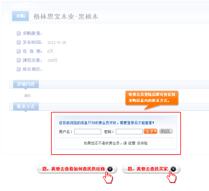 第一步:搜索求购   第二步:选择求购信息